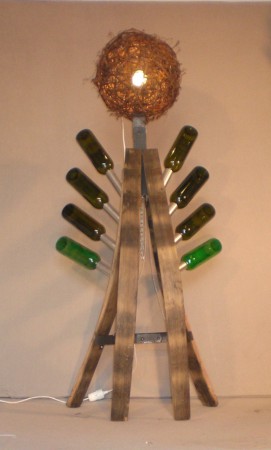 stehend, Kopf aus Weinreben beleuchtet, oder an der Decke "fliegend", original Fassdauben und -reifen, 3 verschiedene Größen, 230 V / 60 W ( 1,5 m bis 2,2 m - 1 m Ø / 20 Kg)
